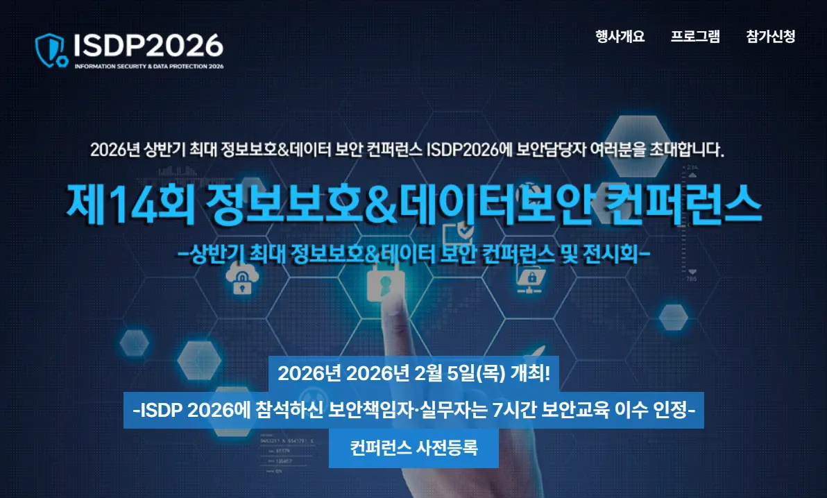 행사명 : 제 14회 정보보호 & 데이터보안 컨퍼런스(ISDP 2026)