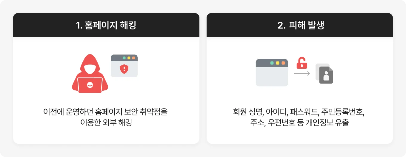 서버/소프트웨어 및 부족한 접근 통제, 암호화 체계 부재가 공격에 기여했을 가능성 있음